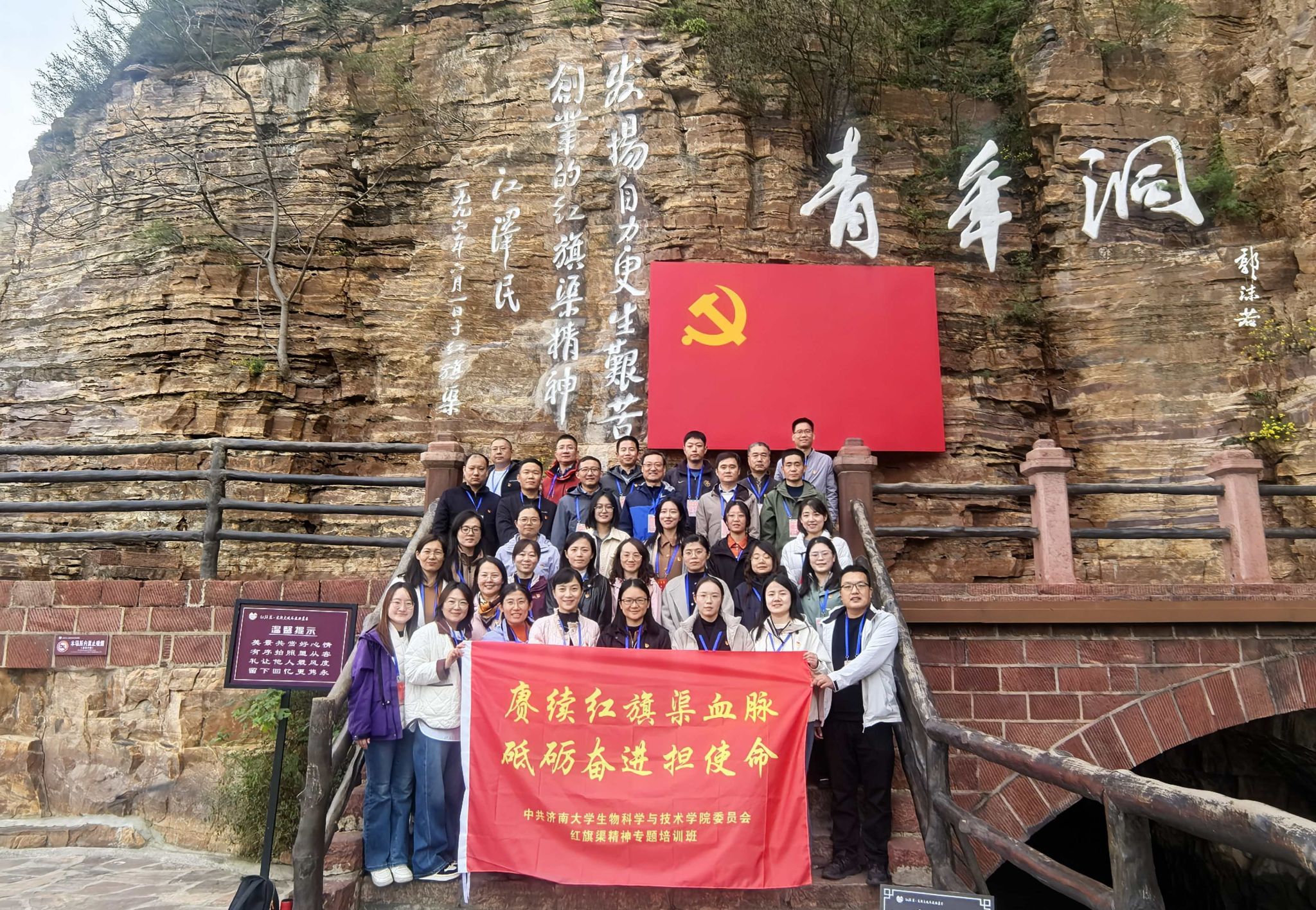 为深入学习贯彻习近平新时代中国特色社会主义思想,传承红色基因,锤炼党性修养,10月25日,太阳成集团tyc714cc党委组织教职工党员,由学院党委书记史国普、院长秦晓春带队,赴红旗渠开展“赓续红旗渠血脉,砥砺奋进担使命”党性学习教育活动。