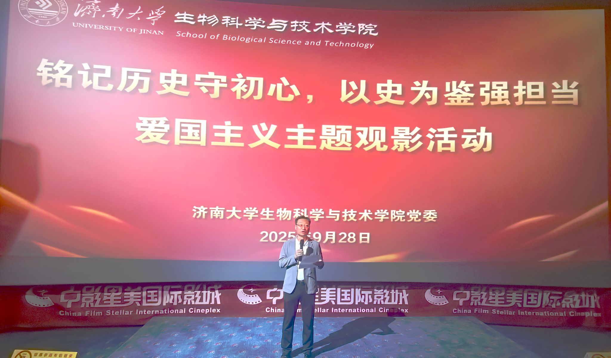 学院党委书记史国普在开场致辞中强调:“铭记历史是为了更好地开创未来。通过回顾侵华日军731部队的暴行,我们要深刻认识‘落后就要挨打’的历史教训,将爱国之情转化为投身科研、服务国家的实际行动。”