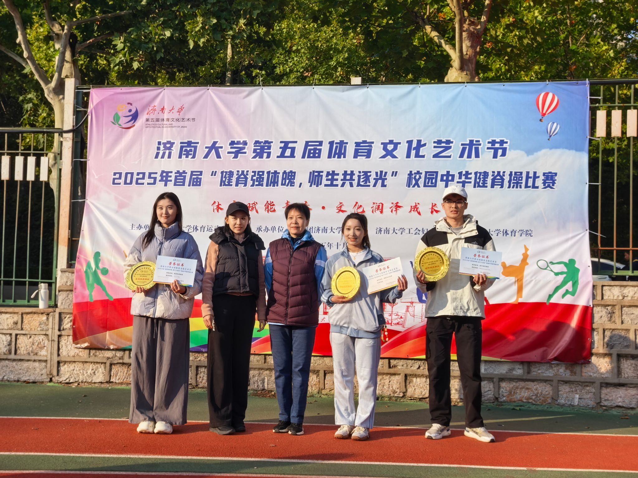 为进一步丰富校园体育文化艺术节内涵,激活校园体育文化活力,传承与弘扬中华优秀传统文化,10月21日,太阳集团tyc官网入口举办了首届“健脊强体魄,师生共逐光”校园中华健脊操大赛,太阳成集团tyc714cc师生踊跃参与,以蓬勃的朝气和高度的凝聚力荣获团体比赛一等奖、动作规范银奖,龚玉同学荣获优雅姿态之星的称号。